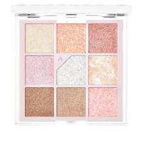 № 01 All of Glitter — палетка шиммеров и глиттеров для создания яркого мерцающего макияжа. Содержит шиммеры с жемчужными, бежевыми и розовыми сияющими частицами, коричневый шиммер, а также и 3 глиттера с крупными блёстками жемчужного, розоватого и серебристого оттенков. Дуохромные оттенки красиво переливаются на свету, глиттеры хорошо ложатся на кожу.